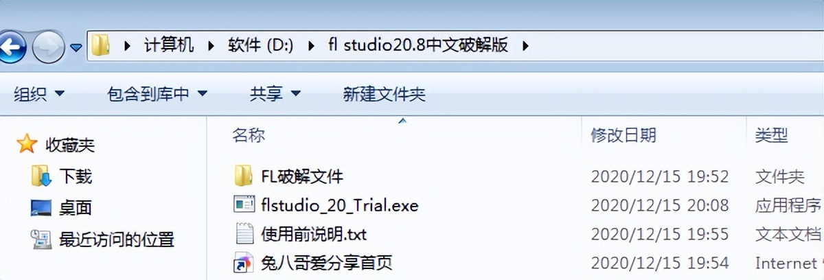 1、在兔八哥爱分享下载解压,得到fl studio20.8安装包和破解文件;