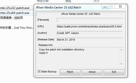 破解方法:安装完成以后把压缩包文件《JRiver Media Center注册机》里面的jriver.media.center.25.x32-patch.exe或者jriver.media.center.25.x64-patch.exe复制到JRiver Media Center 的安装目录,运行jriver.media.center.25.x64-patch.exe,点击path即可。