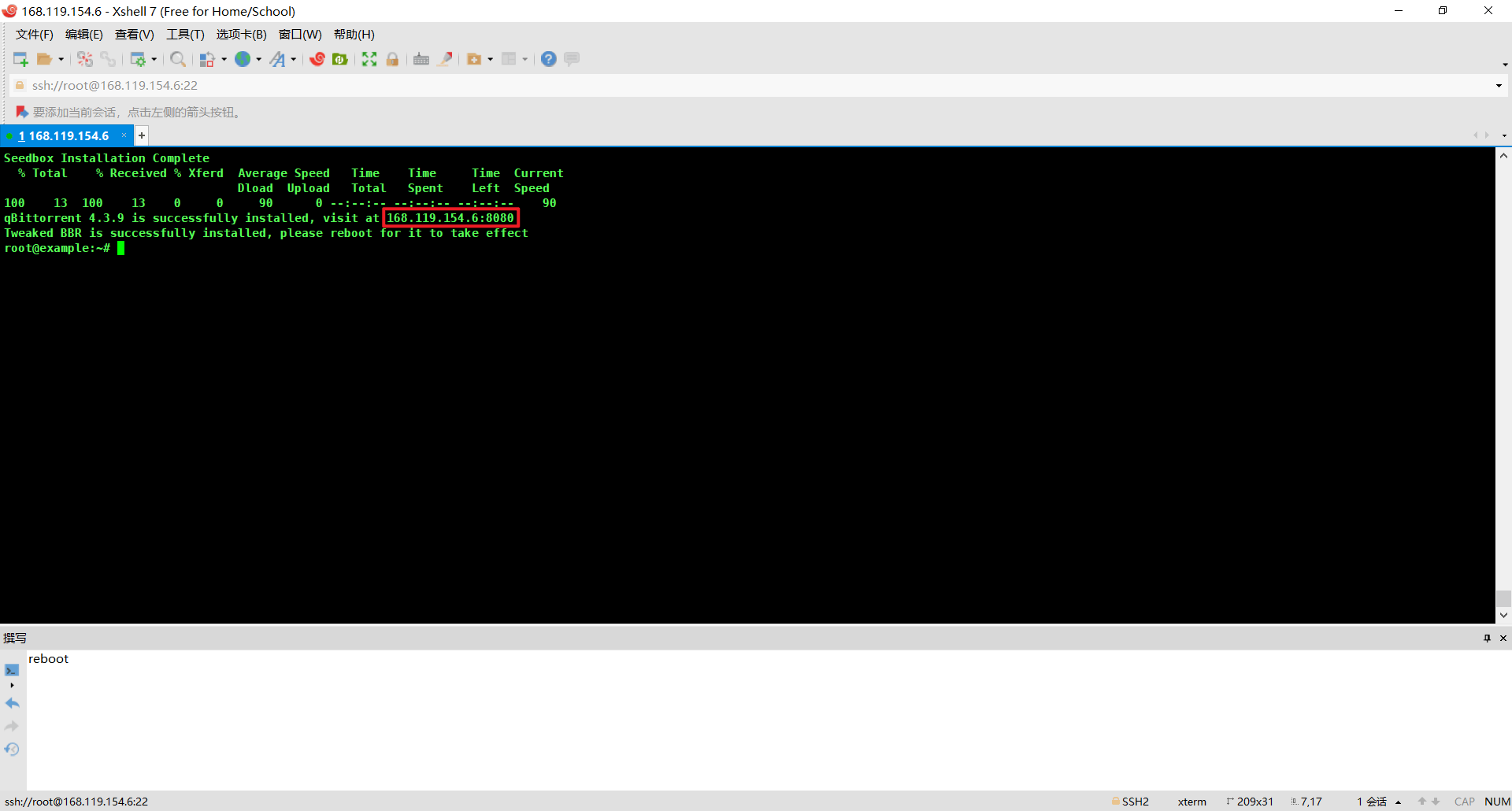 - 安装完成,需要输入 重启服务器,等一两分钟后我们可以通过 访问 qBittorrent。