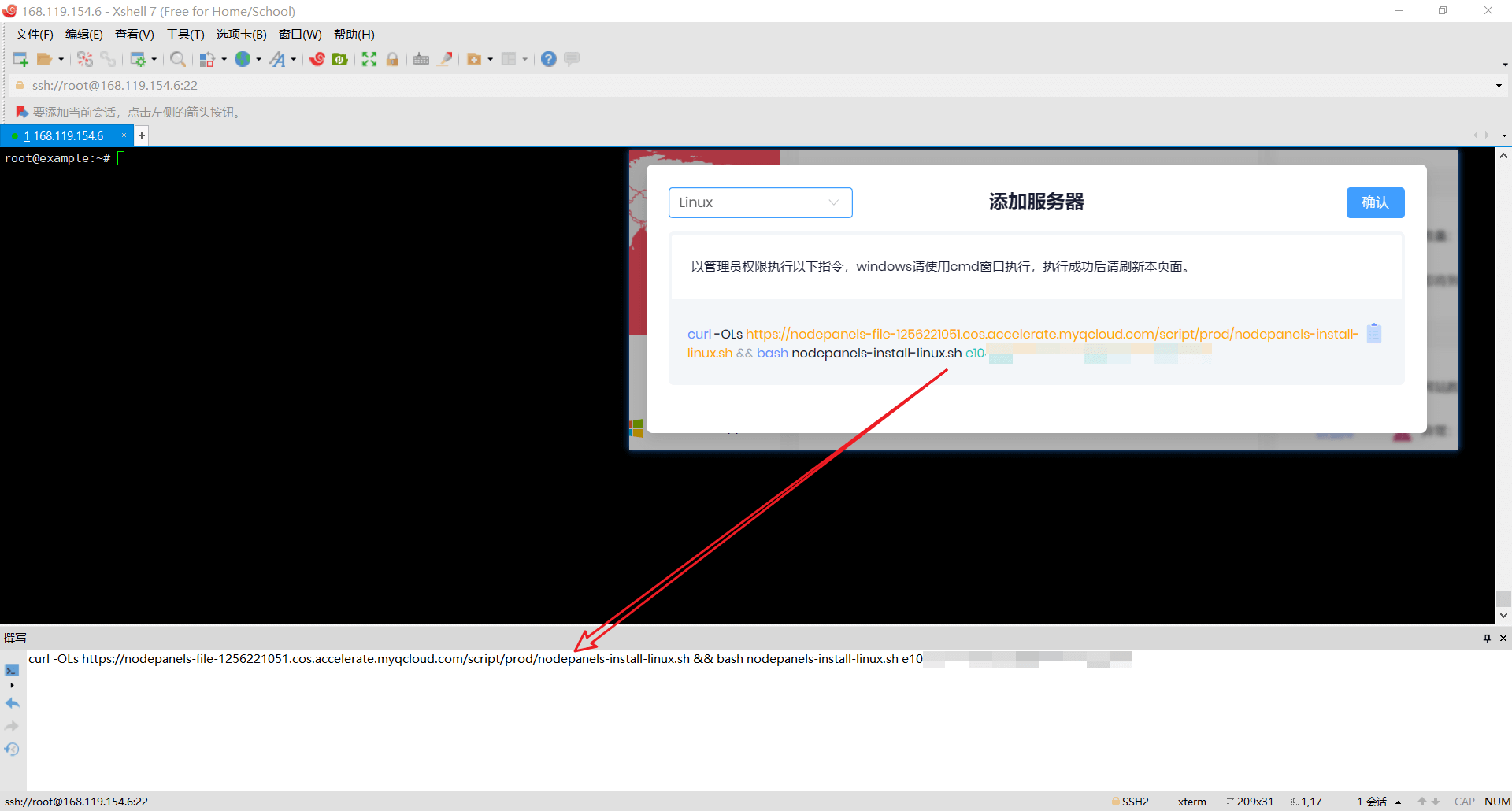 用户名、密码为是上一步 一键脚本 里的: