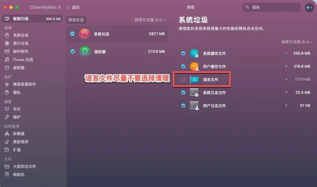 系统垃圾:清理您的系统来获得最大的性能和释放自由空间。