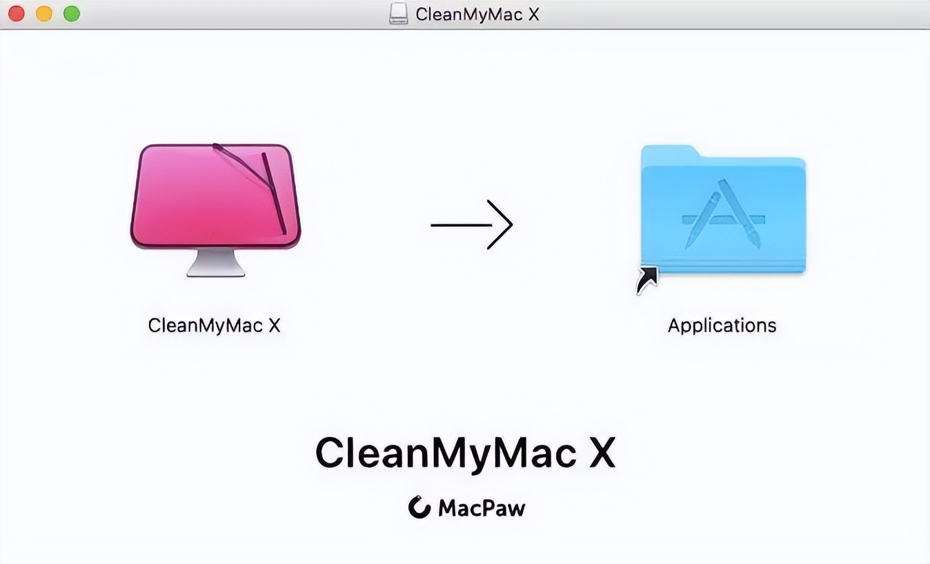 1、将下载完成的安装包然后双击打开,用鼠标拖动CleanMyMac X应用程序的图标,将其拖放至右侧的安装程序文件夹内;