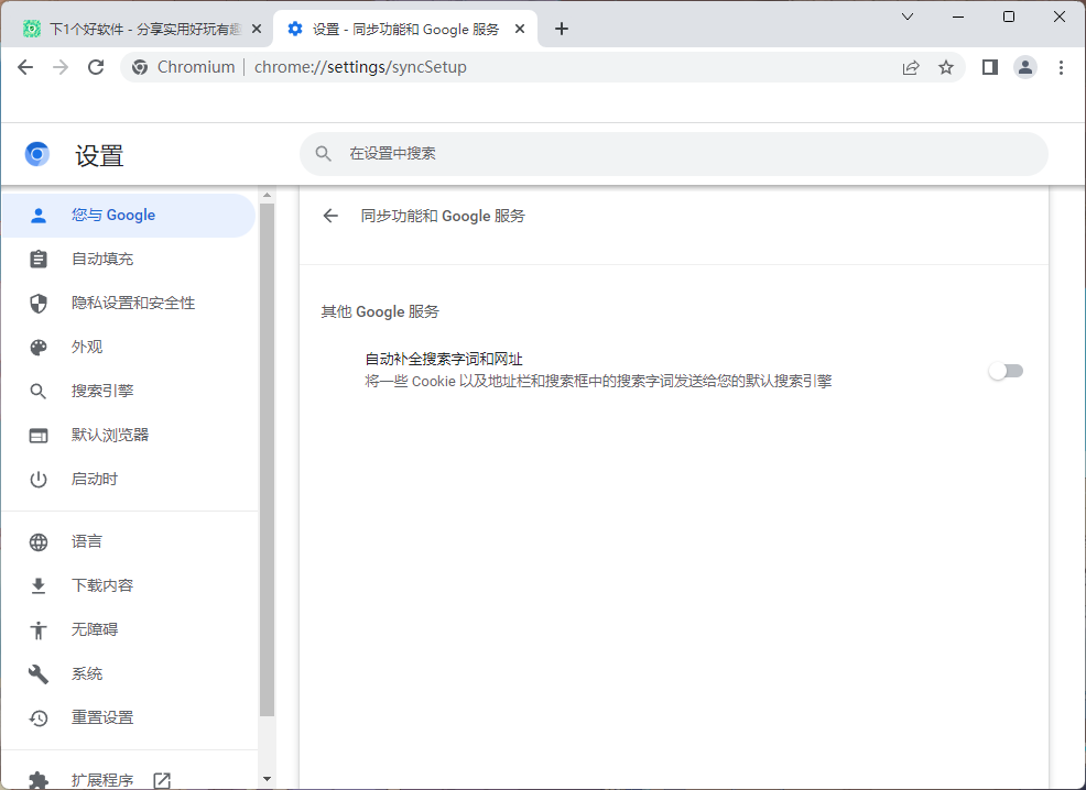 因为取消了谷歌相关服务,所以不能同步书签等数据了,只保留了自动补全字词和网址的功能,默认还是关闭状态。