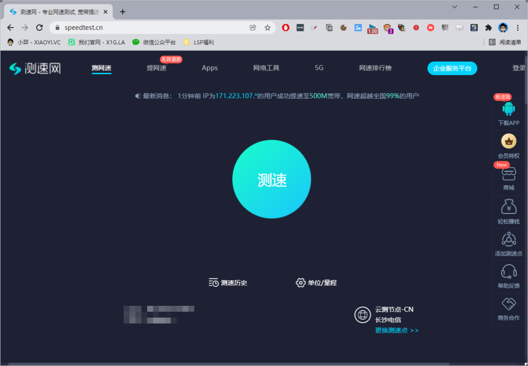 SpeedTest 是目前最主流的网速测试软件了吧,提供了多个平台包括有网页、安卓、iOS,macOS、Windows、浏览器扩展,以及提供了非常多的节点可选。默认会自动选择跟你比较近的节点作为测速。