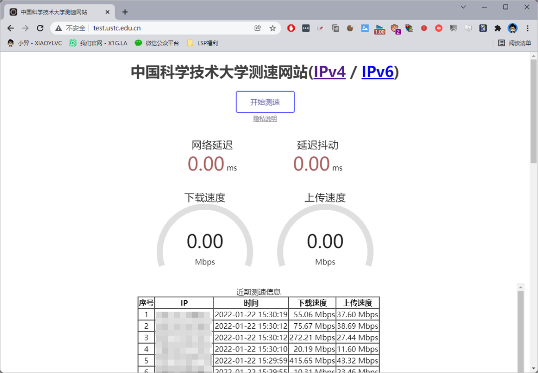 中国科学技术大学测速网站也是基于 LibreSpeed 开源项目搭建的,支持 IPv4 / IPv6,网站没有提供节点可选,不过测试的结果还算比较接近带宽极限速度,大家可以试试看咯。