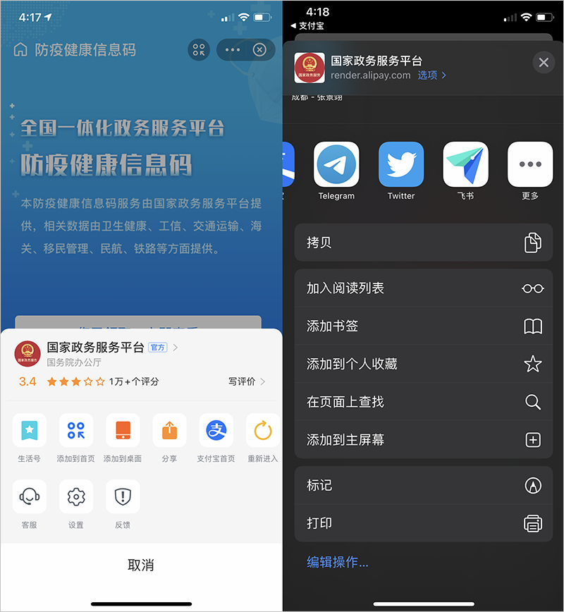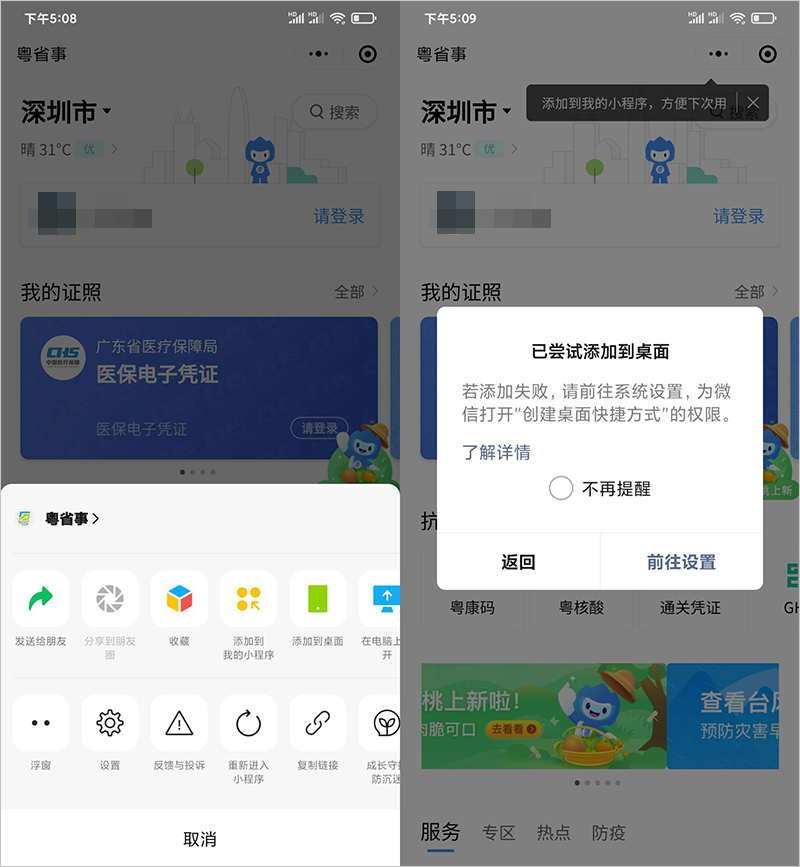 直接添加到桌面:如果你手机戴了比较厚重的保护壳,那么可能有时候双击背面不会触发这个功能,或者需要比较用力去敲击。所以你还可以直接把健康码以快捷方式添加到桌面。