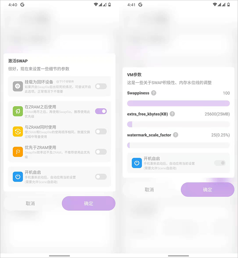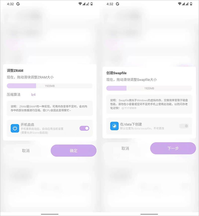 相反,配置比较低的手机,如 4G、6G 内存,适当的开启内存扩容技术,可能会带来一定的体验提升。加上配合 Scene 应用里面的各种调度设置,能给老机子带来性能上的提升。