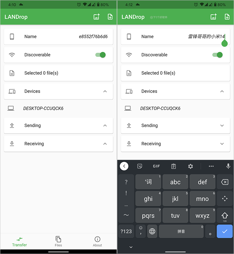 使用「LANDrop」需要设备在同个局域网内,对比其它社交软件传送文件,它无需消耗流量,文件无需经过服务器中转。
