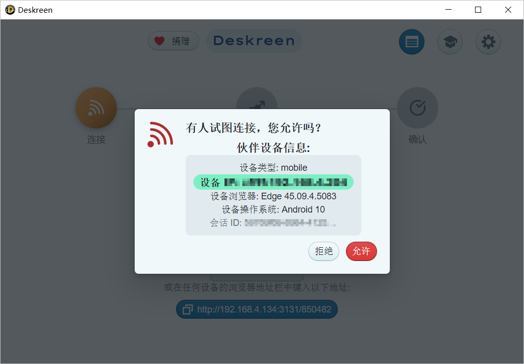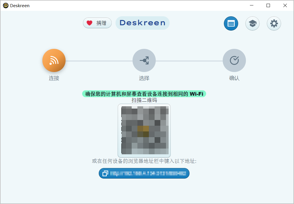 然后确保要扩展显示的设备和电脑在同一个网络环境下,支持扫二维码或者网址的方式来链接。