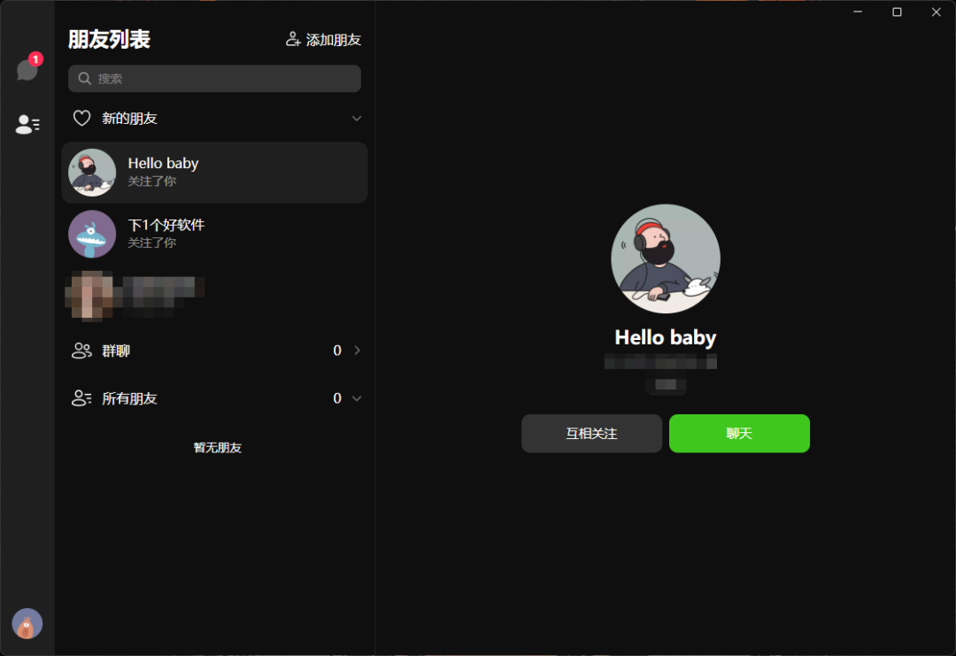 另外还支持发起群聊功能,从用户列表里面添加你需要加入群聊的好友,不过目前群聊的功能也比较少,例如不支持群公告。