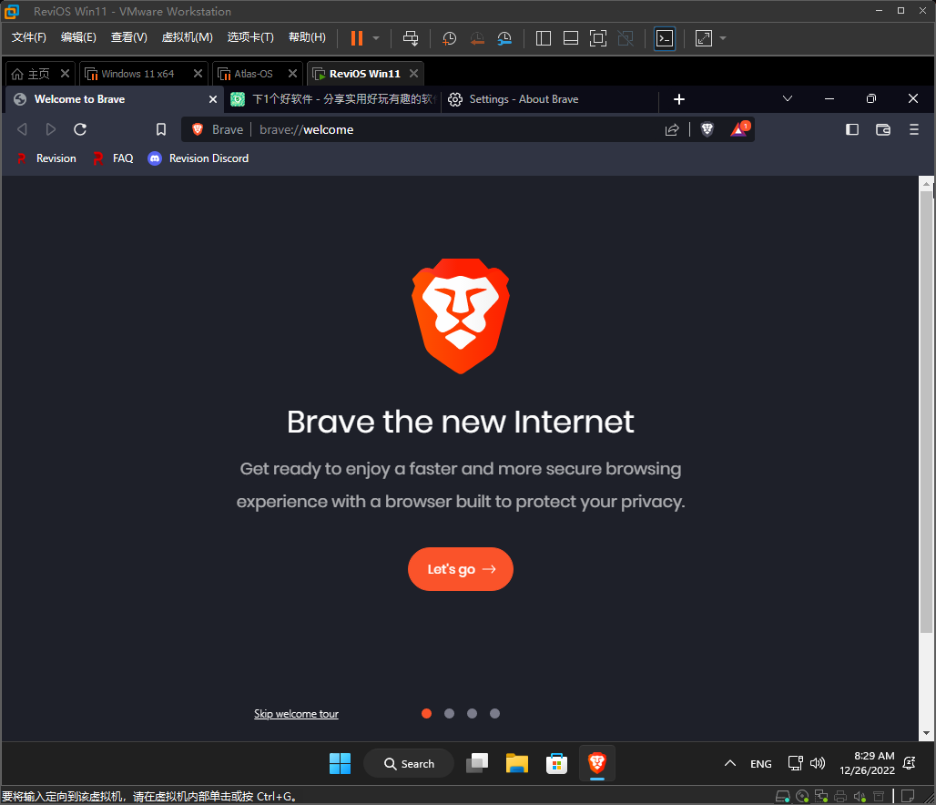 目前「ReviOS」系统提供了两个版本,分别是 Win10 和 Win11 系统,最新版都基于 2022 制作。这里锋哥选择 Win11 版本在虚拟机安装体验。