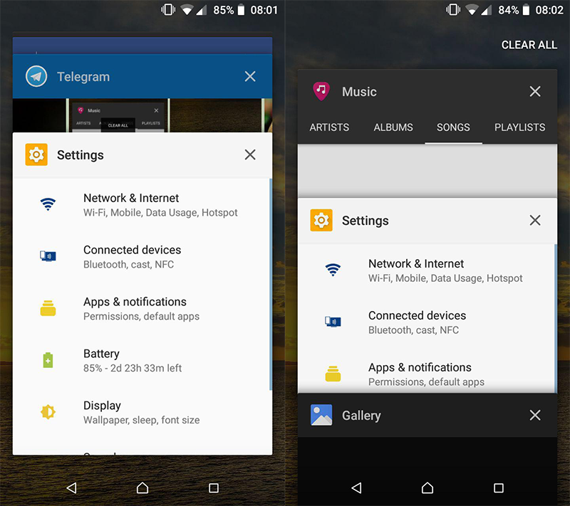 在任务管理界面采用了 Android 4.4 的方式,谷歌官方表示这种方式更节省内存以及流畅。