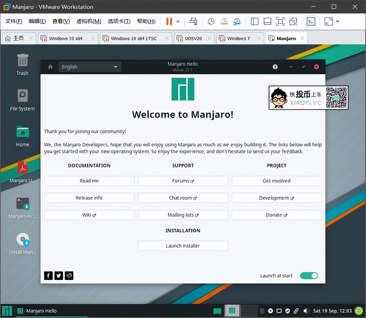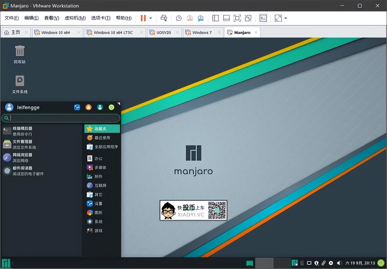 因为想给老爷机用,所以这里雷锋哥推荐下载「Manjaro」的 XFCE桌面环境版本,下面用虚拟机「VMware」安装体验。