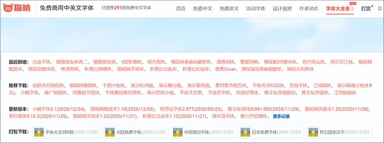 因为字体数量太多,逐个去下载太麻烦,网站作者把所有免费商用字体都打包提供下载,简直良心好评!