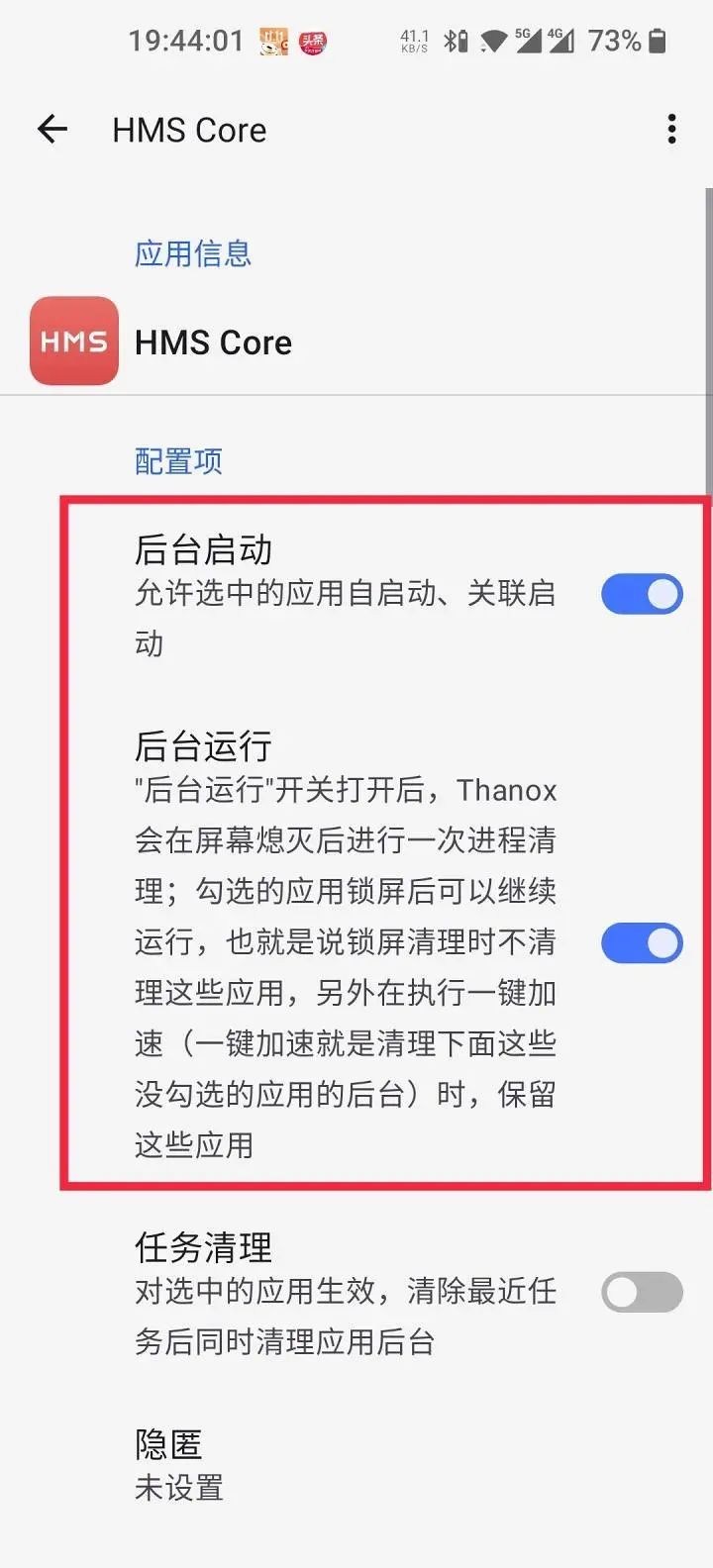 打开 Thanox 找到 HMS Core 进程,然后根据如下图: