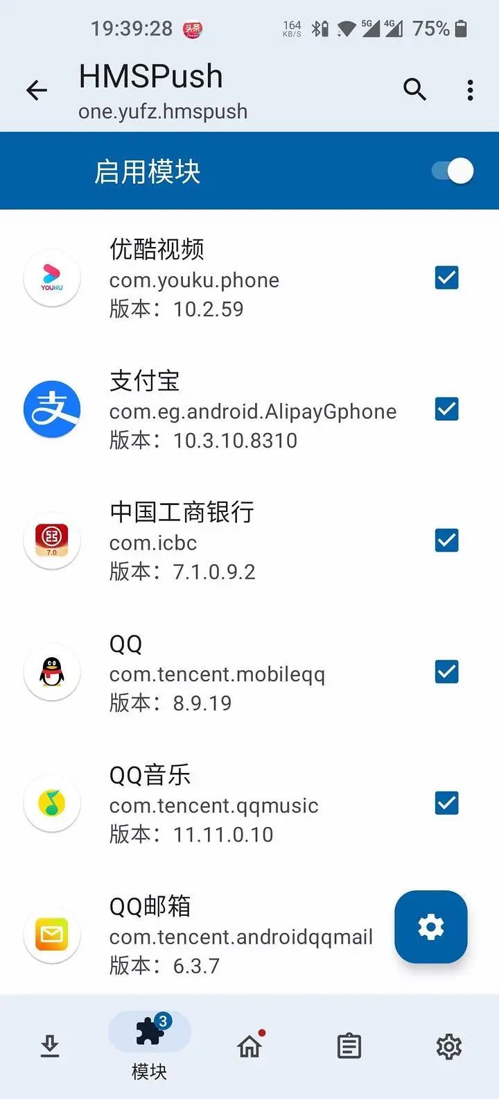 3、LSPosed 里 「HMSPush」模块里勾选你需要支持推送的目标应用(这一步目的是将应用环境伪装成华为设备),然后重启一到两次目标应用使其注册上推送通道。
