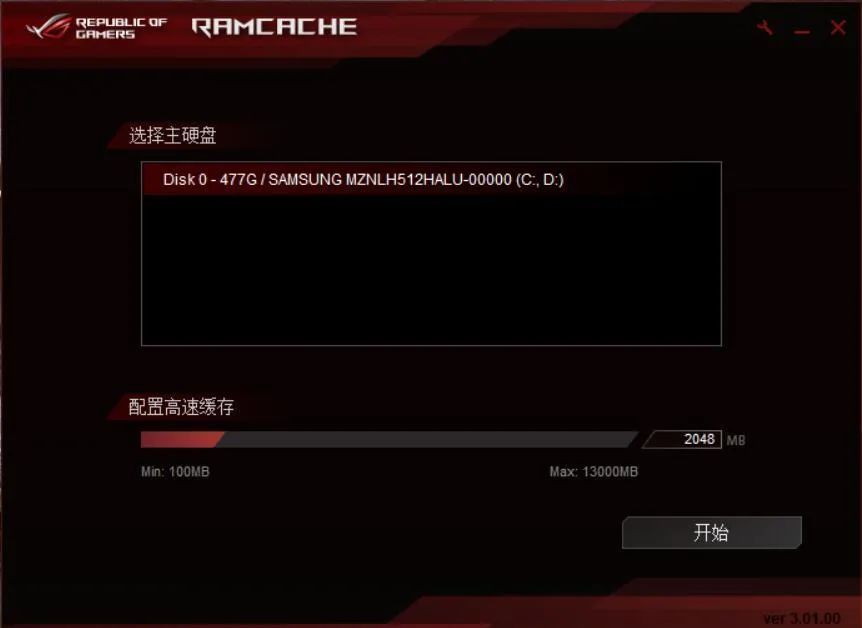 重启系统,运行 RAMCache 软件,会让你选择要加速的硬盘,然后设置缓存的大小,点击开始,就会自动缓存了。