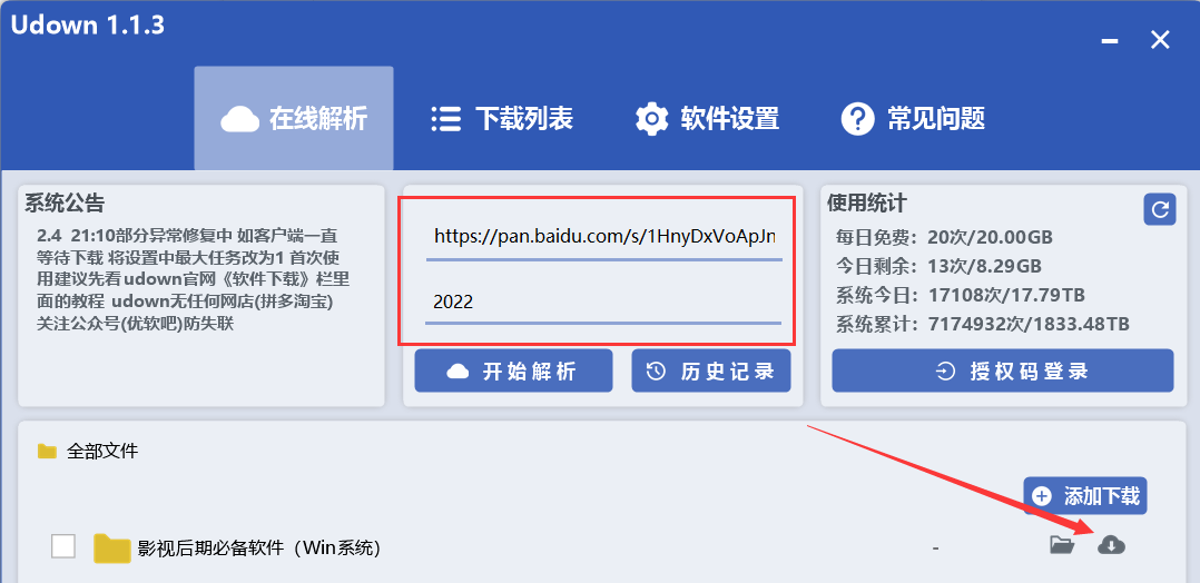 在线解析板块,填入百度网盘分享链接,有提取码就填写,然后点击开始解析,解析之后就可以选择下载,选择保存的位置。