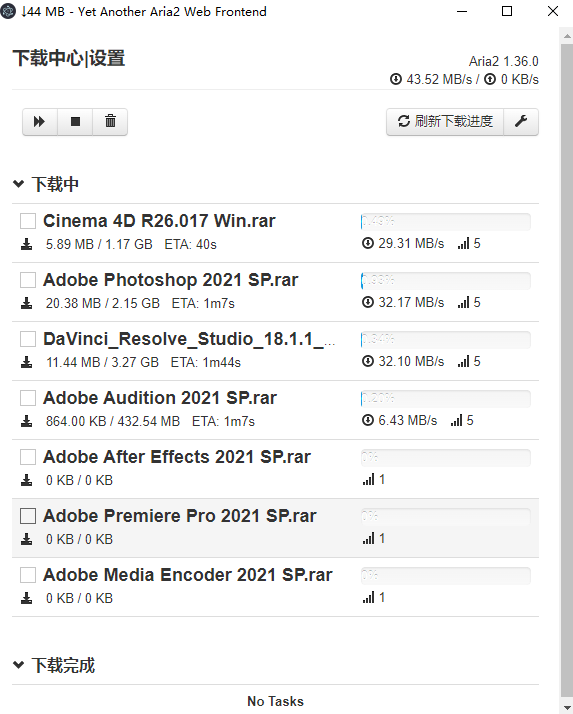 通过解析之后,可以用多线程下载器 Aria2、IDM、Motrix 下载,当然可以直接使用客户端解析下载,测试下载速度,也可以跑满带宽,测试下载速度达到 43MB/S。