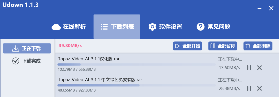 解析好之后,可以点击批量下载,下载速度也杠杠滴!