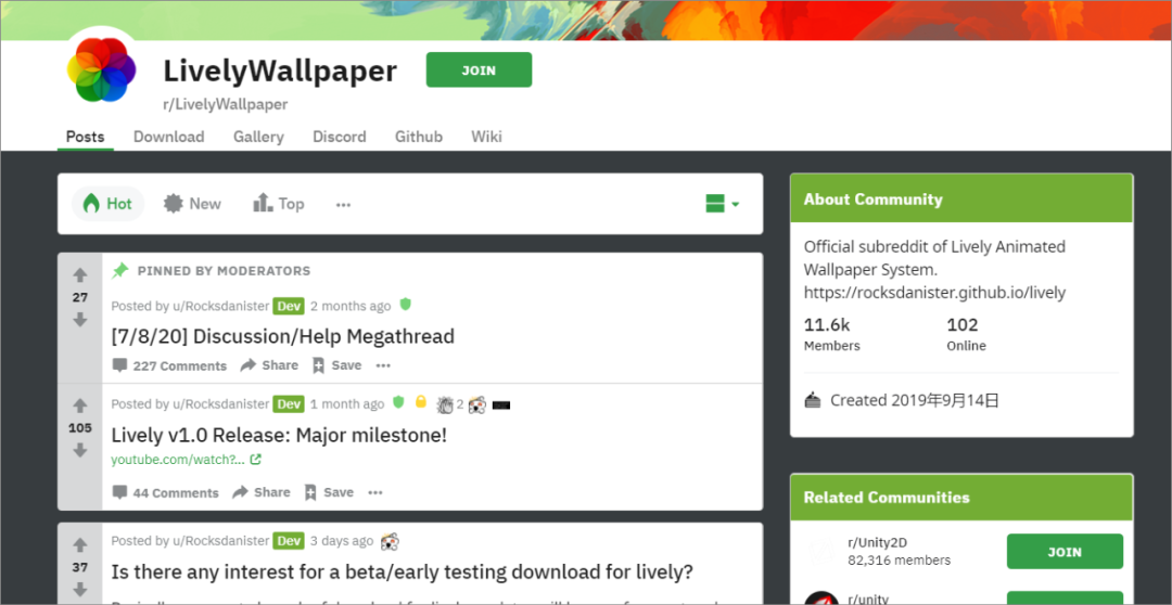 另外在 reddit 社区上也有非常多的「Lively Wallpaper」动态壁纸可以免费下载,如果没有找到自己喜欢的,也可以把本地视频文件设置为动态壁纸,格式支持 webm、avi、mov、mp4,、mkv 等。