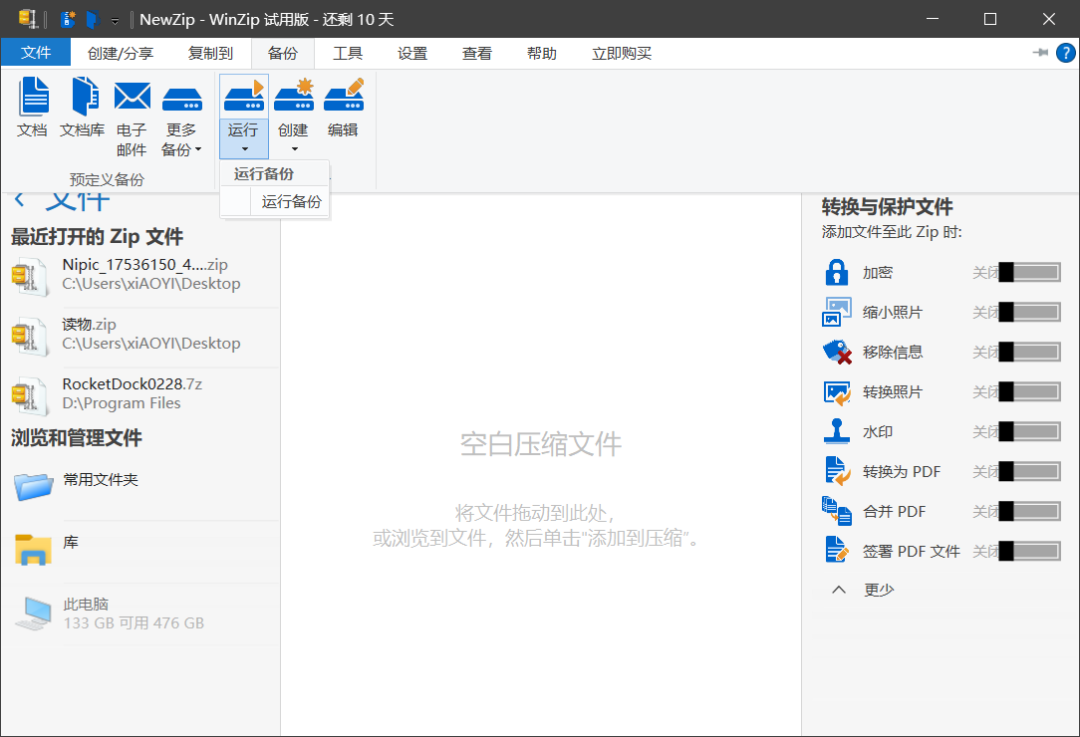 支持创建文件计划备份,例如公司里有些文件需要每天自动备份并压缩,利用「WinZIP」就可以做到。