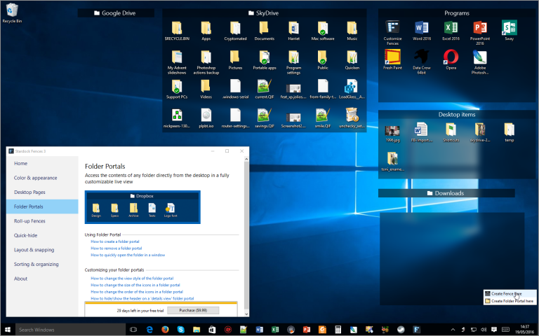 所以有些懒人用户会选择桌面管理类的工具,例如很著名的「Fences」软件,可以把桌面的文件栅栏式分组,从而让你桌面文件变得干净有序。