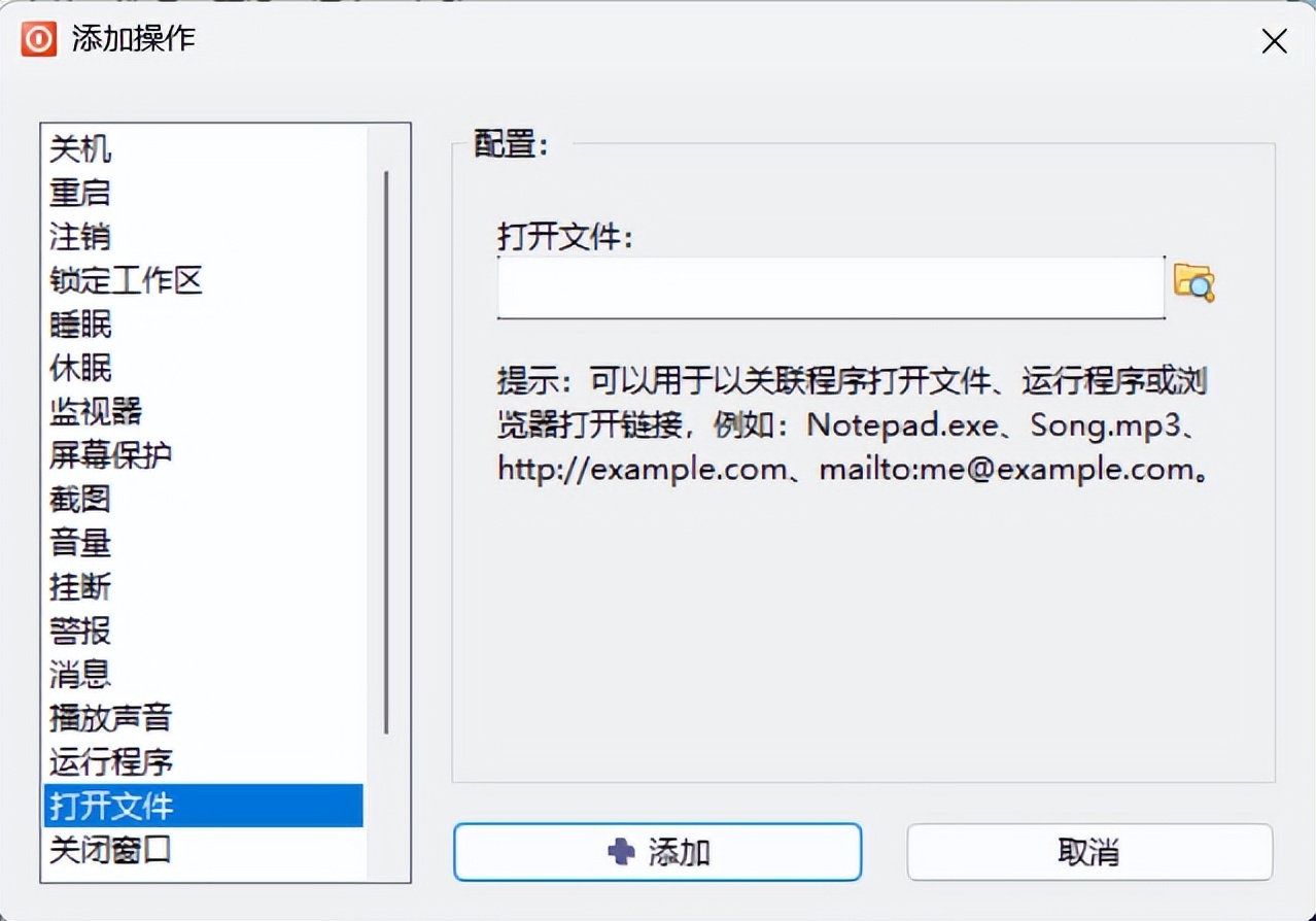接着第二步设置需要定时的具体操作,比如关机、重启、截图、报警、播放声音、运行程序等等。