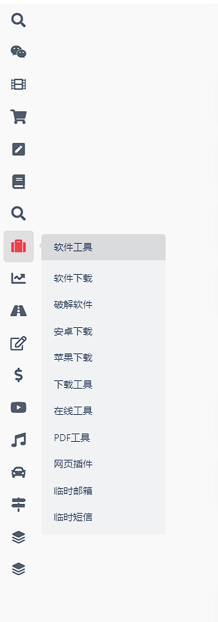 不喜欢这种下拉查找方式的话,也可以通过网站左侧的图标快速分类查找自己喜欢类型的网站。