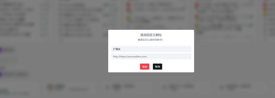 当然如果有你自己喜欢的网站也可以添加到页面中,在“我的导航”板块中,点击添加按钮,输入网站名和地址即可完成添加。