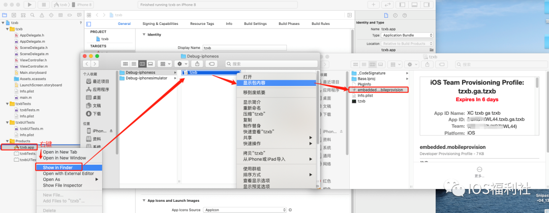 这个证书有效期7天,过期后打到工程的文件夹打开后缀名为xcodeproj的文件,双击打开这它就能重新进入工程,然后直接运行工程,再提取描述文件,签名+安装!