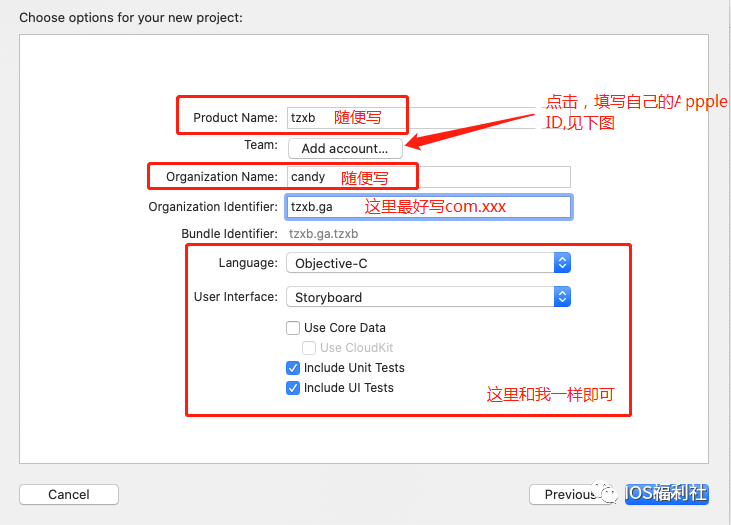 然后如下图示标明的内容,根据自己需要填写