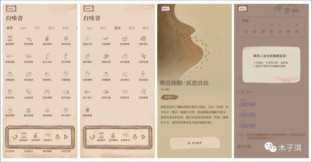 它支持白噪音板块,提供 50 多种唯美白噪音,支持任意 3 种白噪音组合,支持分别调整每种白噪音的音量,支持定时停止播放白噪音;白噪音分类包括:雨声、旋律、自然、课程等。