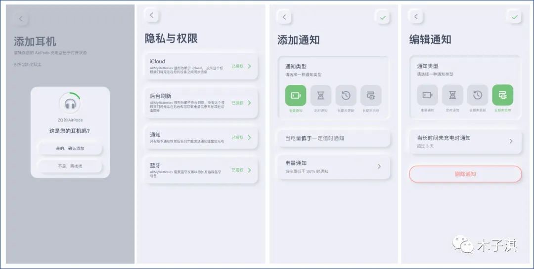 它支持多种通知类型,包括:当电量低于百分之多少时通知、定时通知、当长时间未更新通知、多长时间未充电通知。