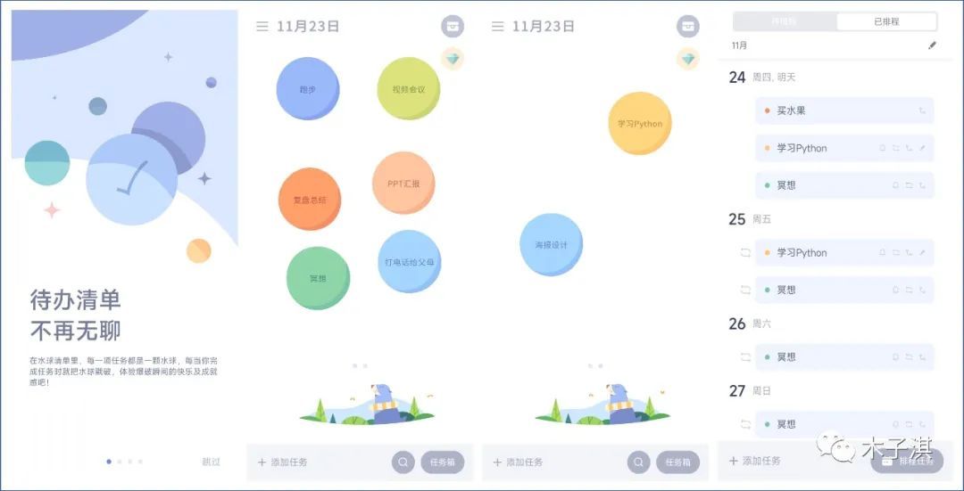 它非常有意思,每一项待办会成为一颗颗可爱的小水球,完成任务就可以用力戳破它,可以拥有满满的成就感,戳破水球的动画和音效也是让人眼前一亮。