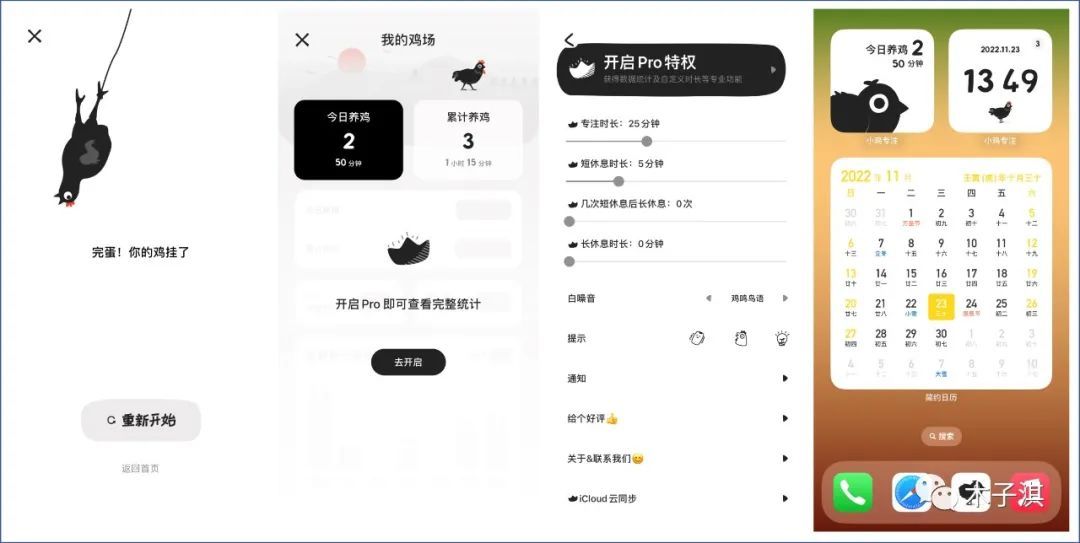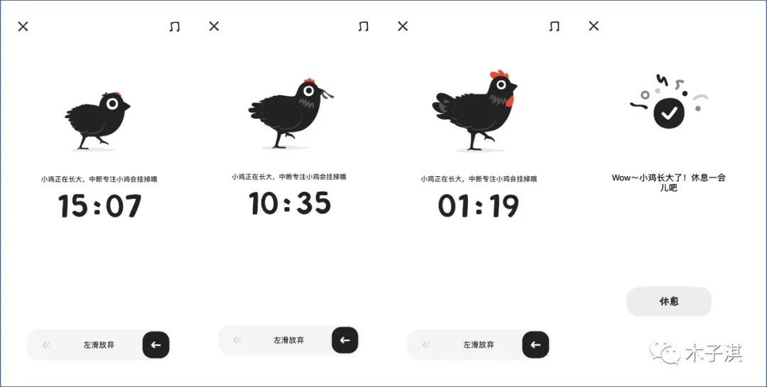 它采用极简设计,画风可爱清新,是一款可以养鸡的番茄钟,可以边专注边养鸡,完成一次专注,也就养大了一只鸡,非常有趣。