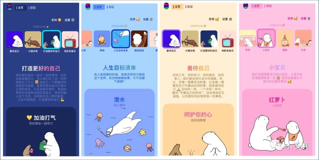 它拥有 100 多张精美的小熊手绘插画,每个界面都是可爱好看,采用卡片设计,颜值非常高。