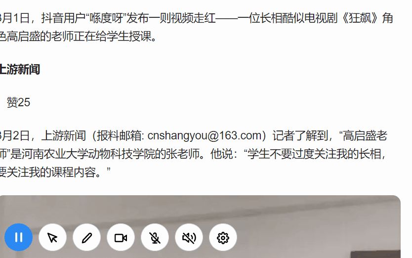 点击开始录制之后,在页面左下角位置会显示一个控制条,控制条的菜单选项也很多,除了开始暂停、开启关闭系统音、麦克风音之外,还可以像很多专业录屏软件一样标注和高亮屏幕。