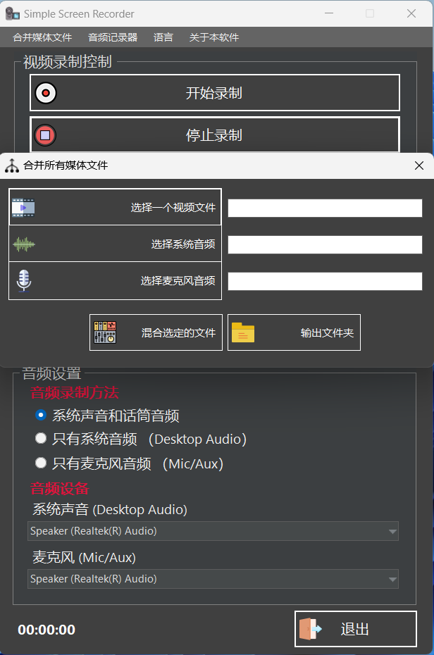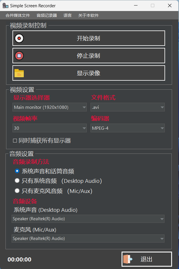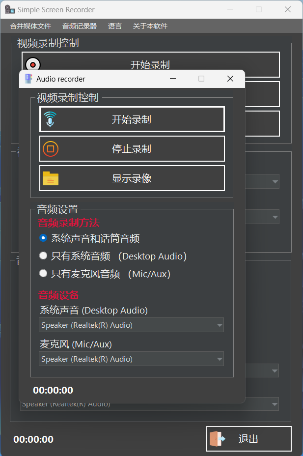 此外,针对单一的音频录制下需求,Simple Screen Recorder 还配置了一款音频录制器,可以实现简单的系统和麦克风音频录制。
