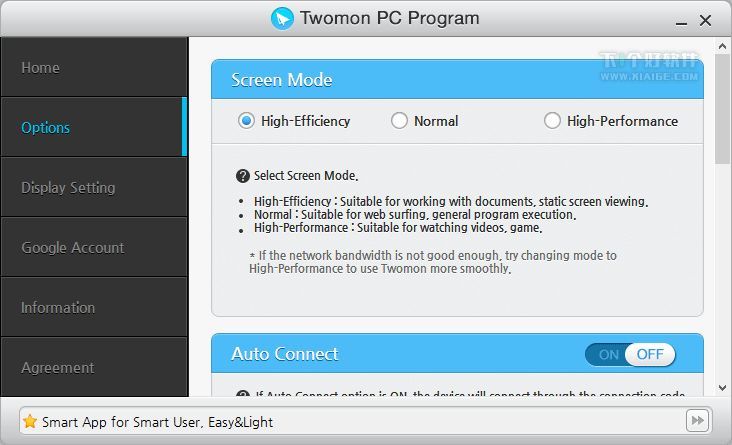 - Auto Connect:平板设备连接后自动变成外接屏幕。
