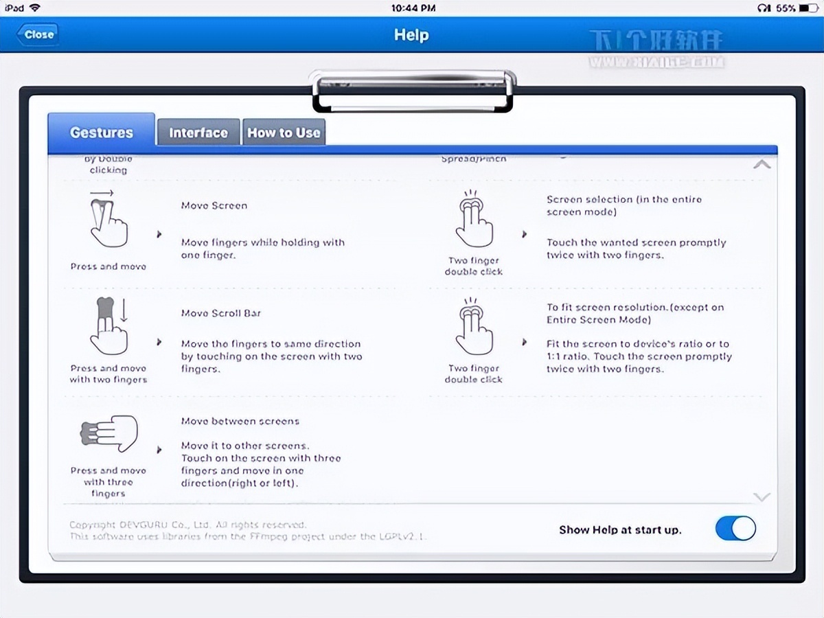 首次运行会教你一些手势操作,例如:三个手指下滑调出设置界面、长按文件/文件夹弹出右键菜单、三个手指左右滑动切换模式等……
