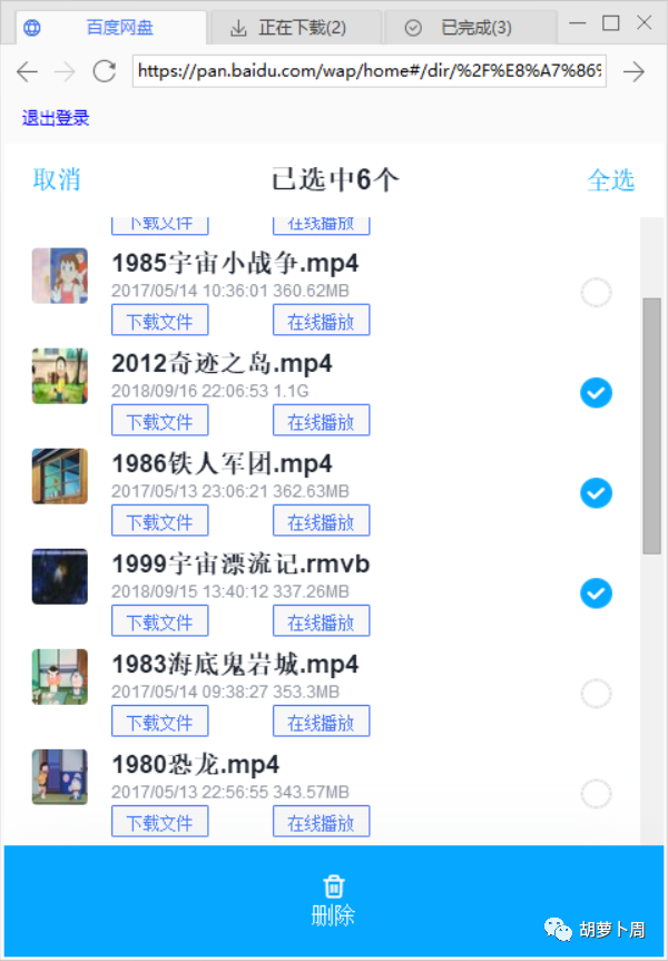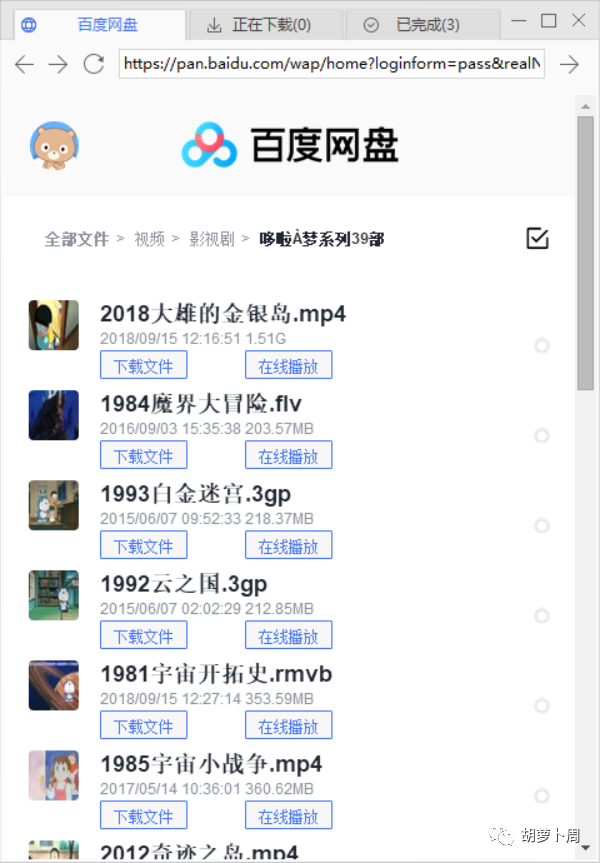 登录过程和我们登录百度网盘网页版的流程一样,如果是视频文件,文件列表下方会同时出现「在线播放」和「下载文件」两个按钮。