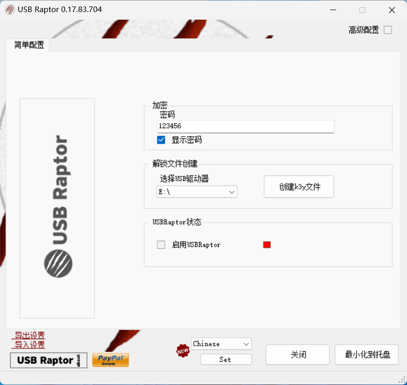这里比较推荐大家勾选开机自启,这样每次开机的时候 USB_Raptor 就会自动启动,插入 U 盘之后才能进入系统。