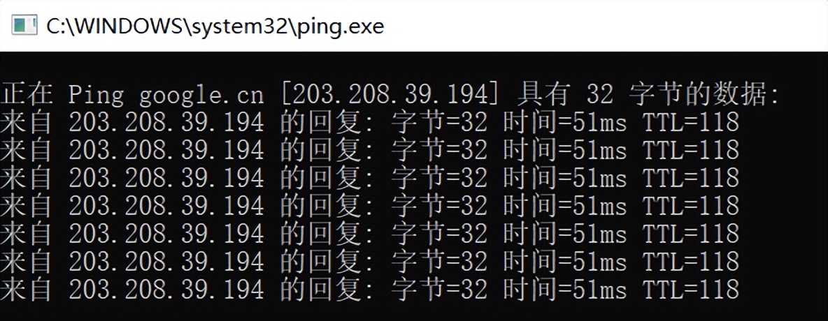 然后就能ping出你目前连得到的谷歌服务器IP地址,我的这里是203.208.39.194,记住这个IP地址。