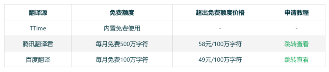 里面有提到关于免费接口的使用限制:百度翻译的接口每月100万字符,翻译君每月500万字符。这个日常个人使用的话,两个交换着使用,平均下来就算一天翻译10万多个字符,也完全没啥问题。