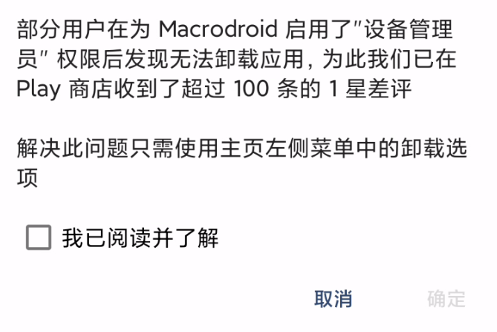 另外需要注意的问题是,有的功能需要用到设备管理员的权限,在授予之后,软件将无法卸载,如果你上手玩了几天,授予了一些权限,然后卸载的时候不知道去哪里取消,直接进软件的侧边栏点击卸载就行。
