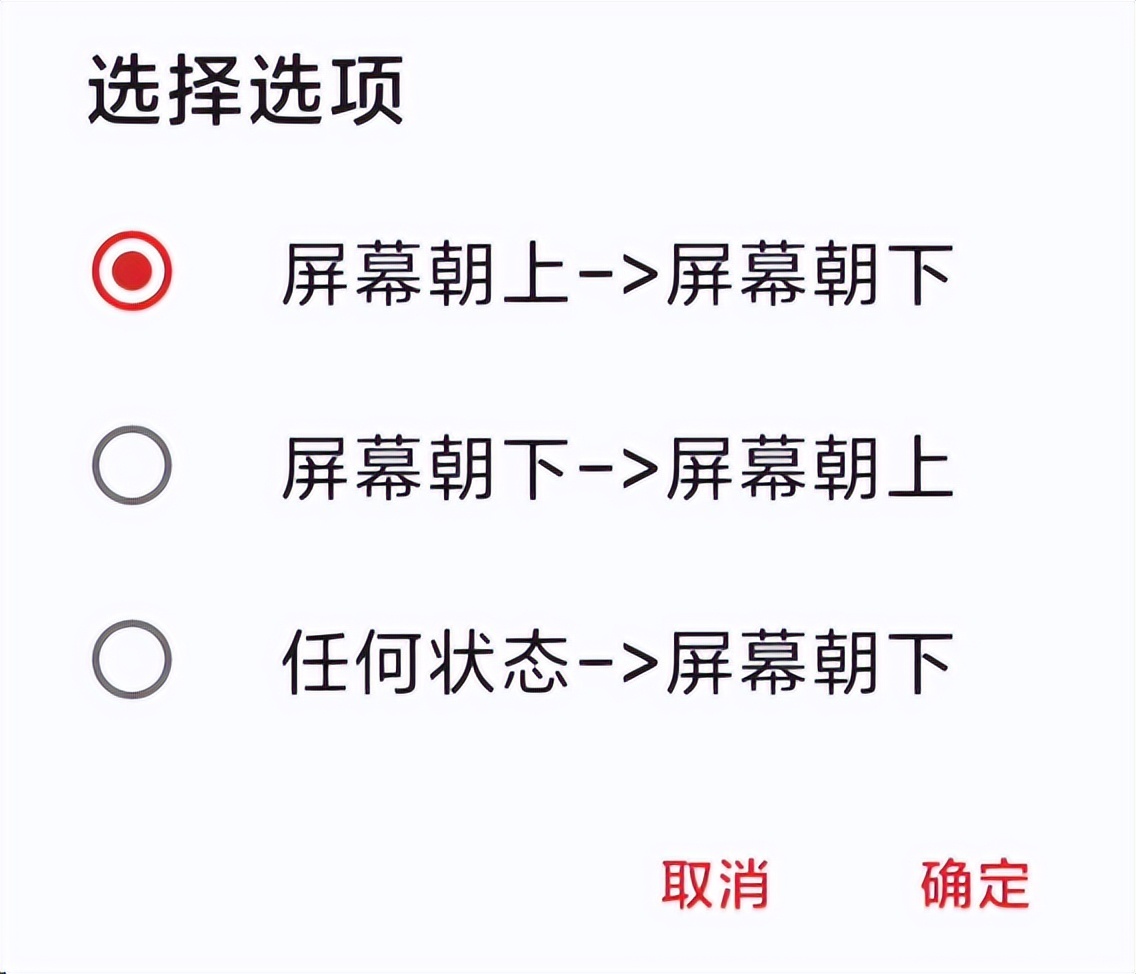 软件的触发器支持非常多的条件,这里来演示一下翻转屏幕自动静音(你也可以设定其他想要的操作)。选择好设备翻转触发之后,可以看到它会问你:是从什么状态变化的时候才触发。
