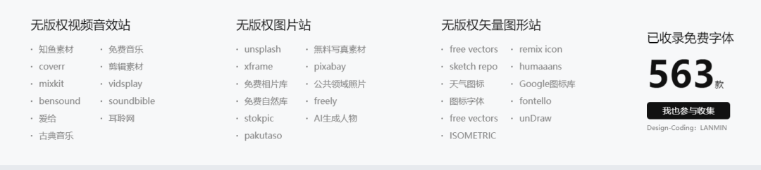 网站底部还有免费的视频音效、图片、矢量图网站导航。