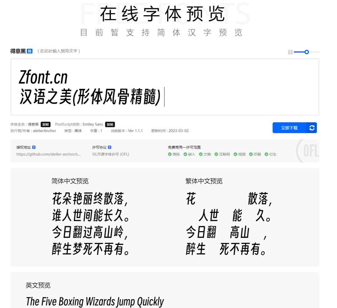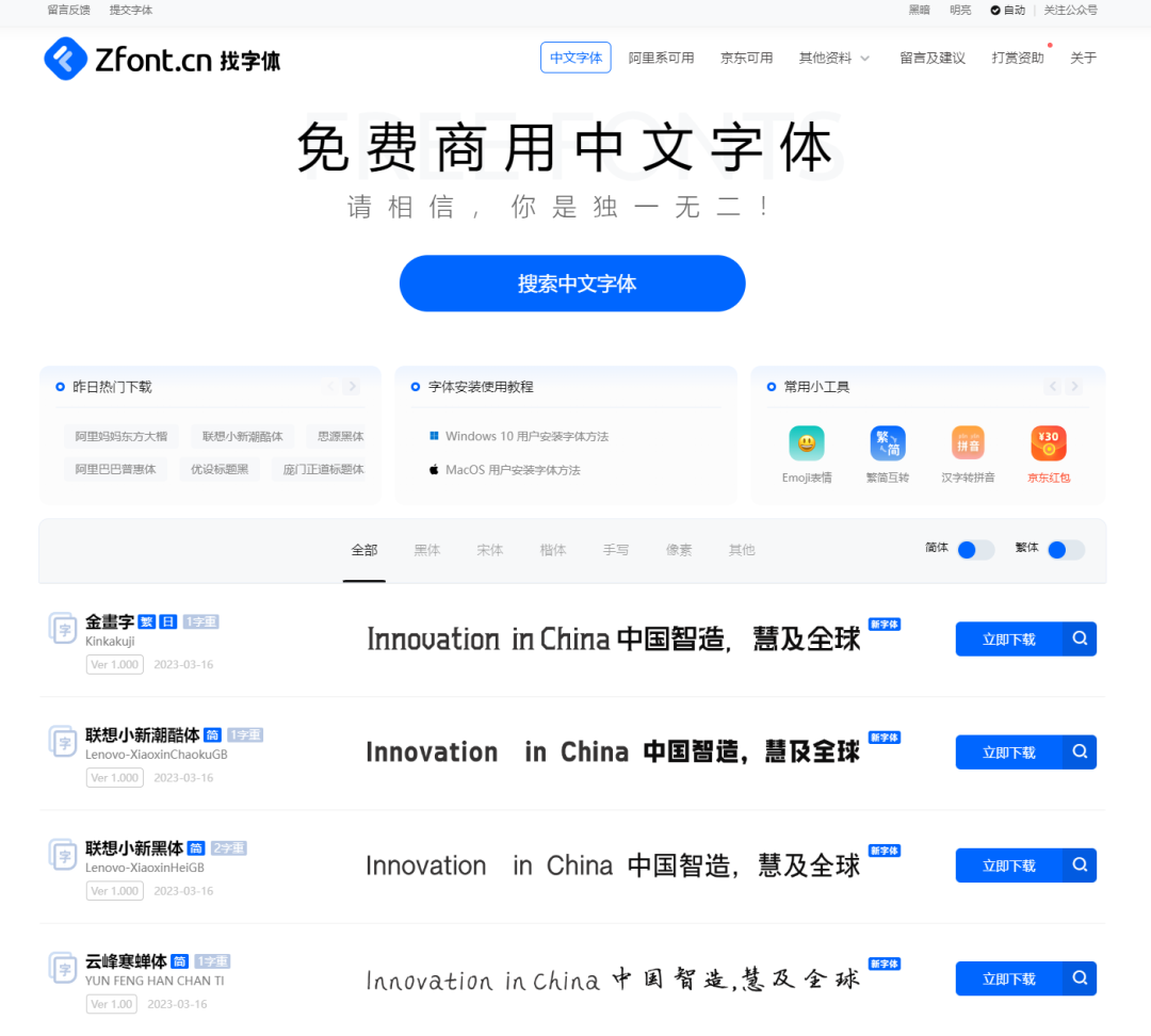 找字体是一个提供免费可商用中文字体下载网站,目前已收录 563 款免费商用中文字体,提供字体预览,无需登录即可在线下载,提供飞书网盘(无需登录)高速下载。
