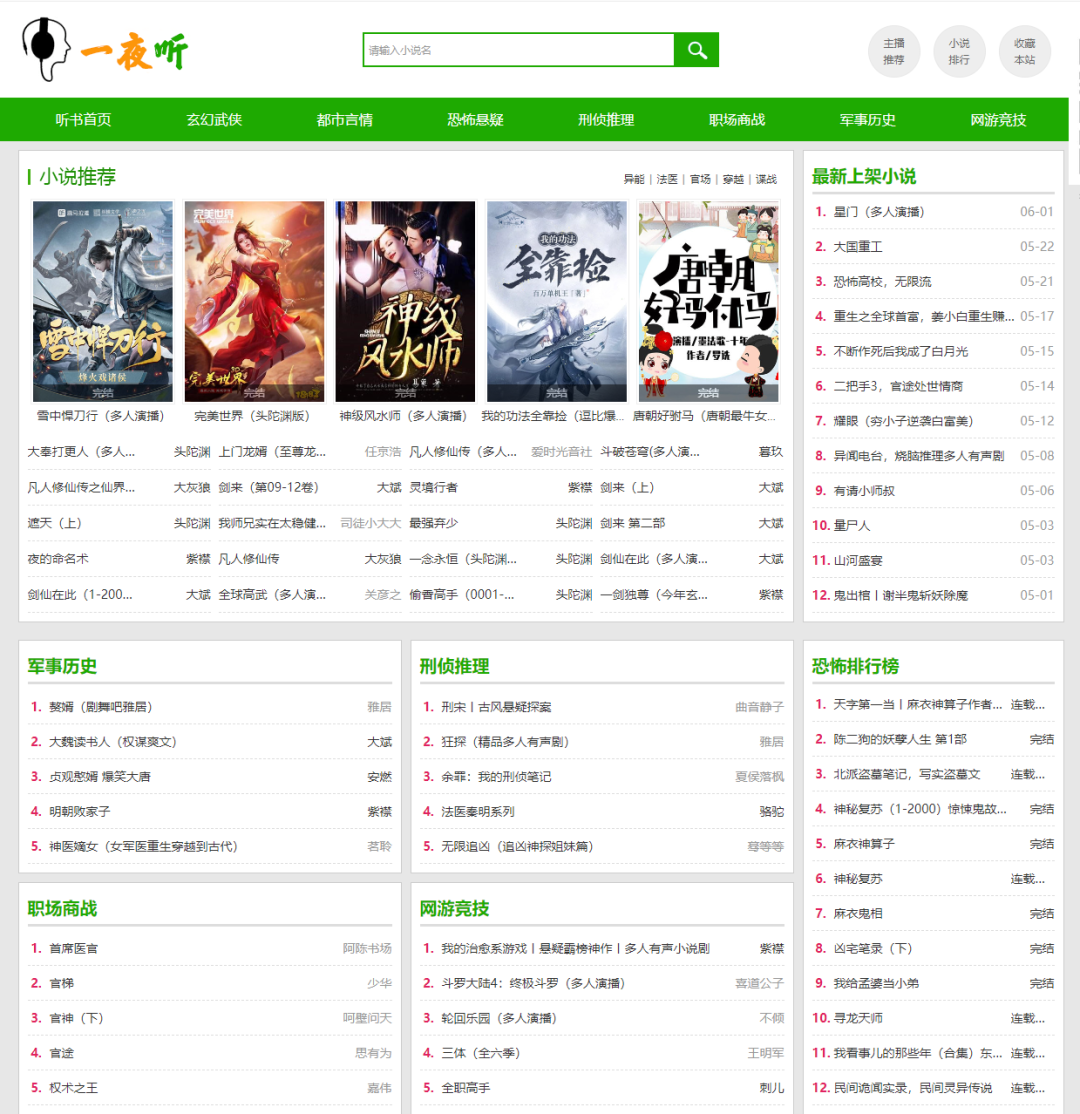 一个干净清爽的听书网站,手机、电脑都可以打开收听。